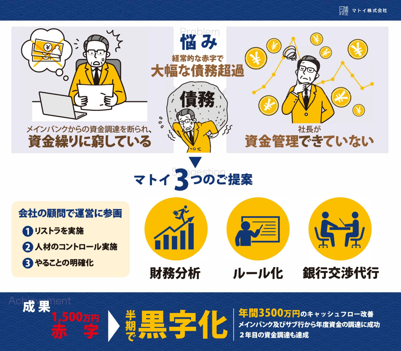 マトイにご相談をいただき、財務支援及び人事運営を行い